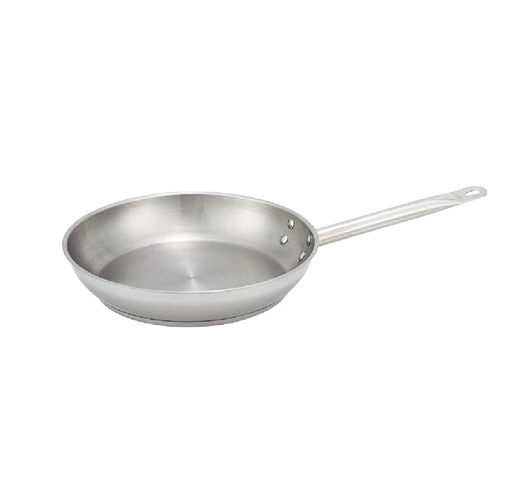 - La parte inferior plana grande distribuye el calor de manera uniforme, ideal para dorar carne y verduras que requieren solo una pequeña cantidad de líquido para el proceso de cocción